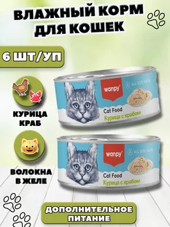 Консервы влажный корм для кошек с курицей и крабом 6 шт