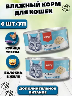 Консервы влажный корм для кошек с курицей и треской 6 шт