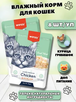 Паучи влажный корм для кошек курица гребешок 8 шт