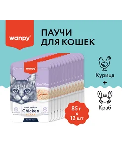 Влажный корм для кошек "Курица и краб" 12 шт х 85г