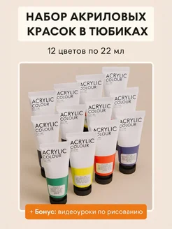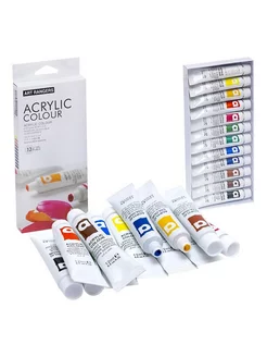 Краски акриловые 12 цветов, в тюбиках по 6 мл с кистью