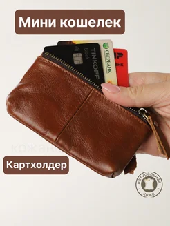 Мини кошелек из натуральной кожи для карт и денег кожаный
