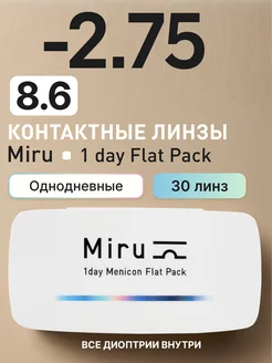 Линзы контактные Miru 1 day Flat Pack, -2.75, 30 шт