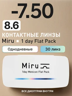 Линзы контактные Miru 1 day Flat Pack, -7.50, 30 шт