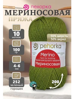 252-Зеленый горошек меринос шерсть детская тепл шелковист
