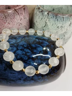 Эластичный браслет из натурального белого кальцита 6мм