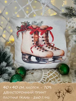 Наволочка новогодняя на молнии 40х40 с коньками
