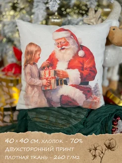 Наволочка новогодняя на молнии 40х40 с Санта Клаусом