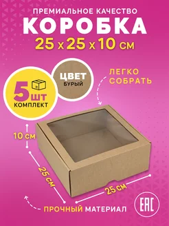 Подарочная крафт коробка самосборная 20x20x7 см, 5 шт
