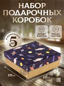 Подарочаня крафт коробка самосборная 20x20x7 см, 5 шт