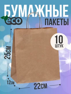 Подарочный бумажный пакет с ручками крафтовый 10 штук