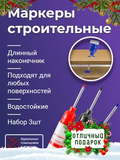 Маркер строительный разметочный с тонким наконечником, 3 шт
