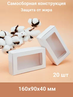 Белые коробки с прозрачным окошком(крышкой) 160x90 20 штук