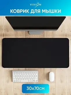Большой коврик для мышки игровой 30x70 см черный однотонный