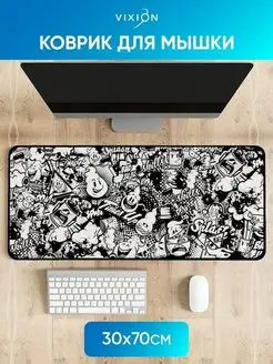 Большой коврик для мышки игровой 30x70 см Граффити белый