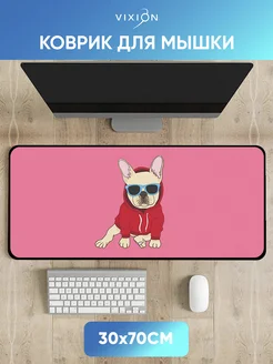 Большой коврик для мышки игровой 30x70 см Бульдог розовый