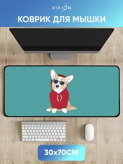 Большой коврик для мышки игровой 30x70 см Корги бирюзовый