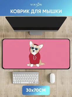 Большой коврик для мышки игровой 30x70 см Корги розовый
