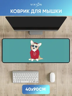 Большой коврик для мышки игровой 40x90 см Корги бирюзовый