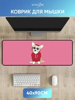 Большой коврик для мышки игровой 40x90 см Корги розовый