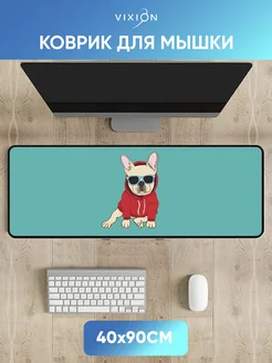Большой коврик для мышки игровой 40x90 см Бульдог бирюзовый
