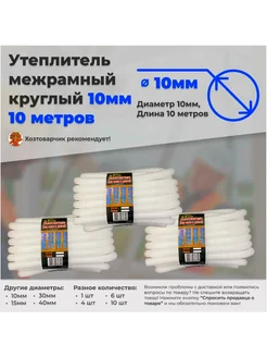Утеплитель межрамный круглый 3шт 10мм 10метров поролон ППЭ