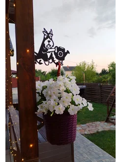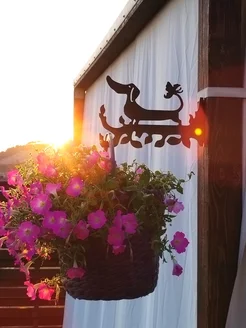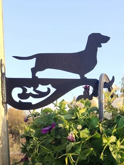 Собака такса с бокалом - кронштейн для кашпо, фонарика