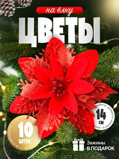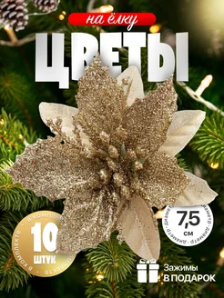 Елочные украшения Цветы на елку золотые новогодние маленькие