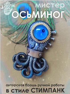 авторская брошь Осьминог ручной работы в стиле Стимпанк