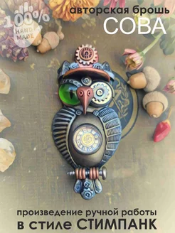 авторская брошь Сова ручной работы в стиле Стимпанк