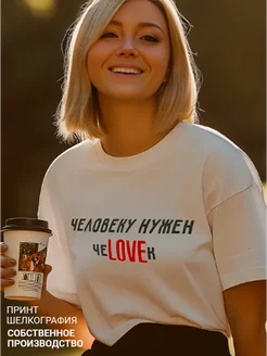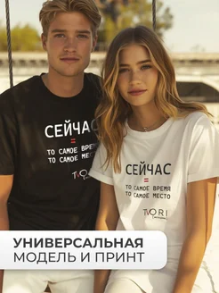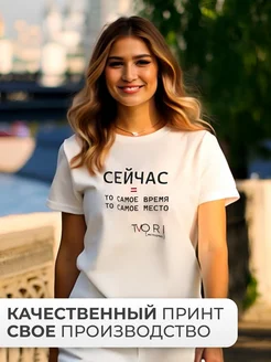 футболка базовая хлопок с принтом и надписью СЕЙЧАС