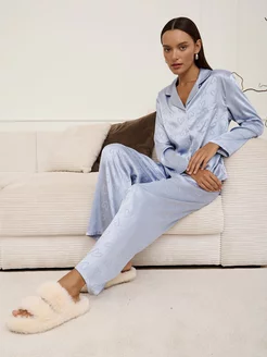 Шелковая пижама со штанами и рубашкой домашняя
