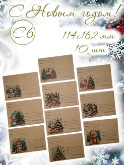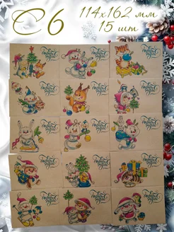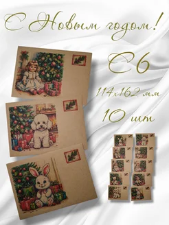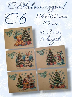 С Новым годом! Крафтовые конверты для писем 10 шт С6