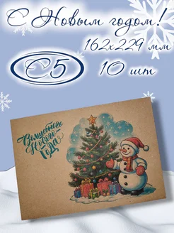 С Новым годом! Крафтовые конверты для писем 10 шт С5