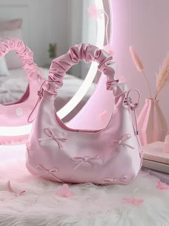 Сумка для учебы большая а4 тоут розовая с бантиком y2k