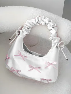 Сумка через плечо маленькая замшевая хобо с бантиками