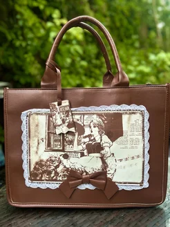 Сумка для учебы большая тоут черная на плечо с бантиком y2k