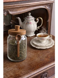 Стеклянная банка с крышкой и ложкой для сыпучих продуктов