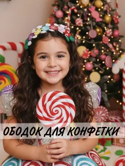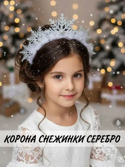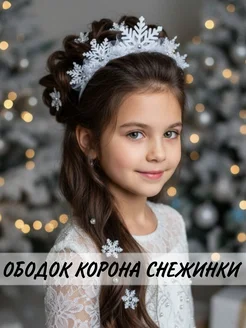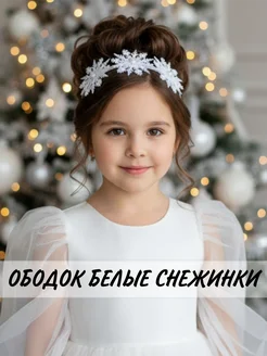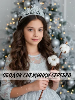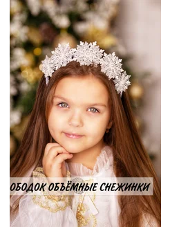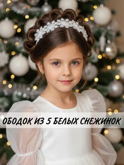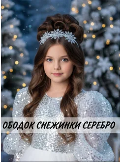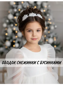 Ободок новогодний из трех снежинок с блестками и бусинами
