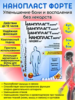 Нано пластырь при боли и воспалении 3х8см*4уп