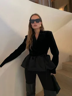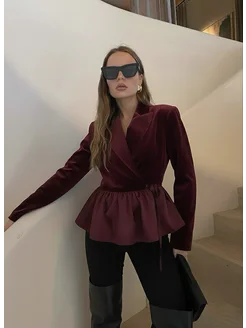 пиджак приталенный бархатный с баской