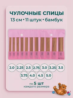 Спицы чулочные носочные 13 см от 2 до 5 мм 11шт