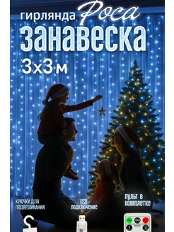 Гирлянда штора новогодняя холодный свет