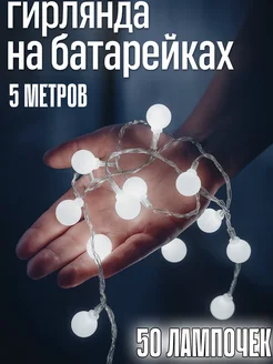 Гирлянда холодный свет на батарейках светодиодная 5м