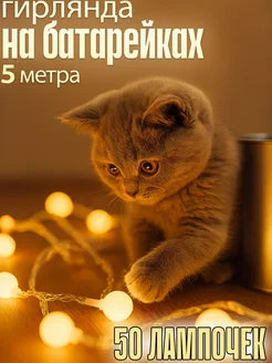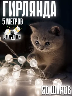 Гирлянда холодный свет на батарейках 5 м