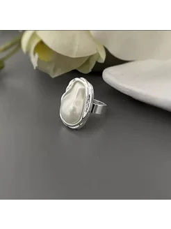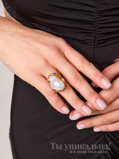 Кольцо жемчуг регулируемое крупное бижутерия