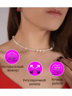 Чокер из жемчуга чокер из бисера бижутерия на шею подарок