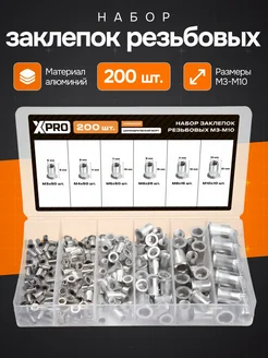Набор заклепок резьбовых, М3-М10, 200шт, алюминий