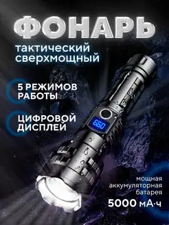 Фонарь LED аккумуляторный мощный тактический фонарик