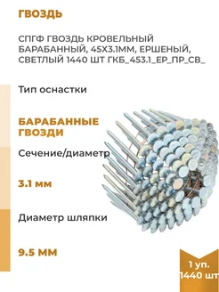 Барабанный кровельный гвоздь 45х3. 1мм, ершеный, 1440шт